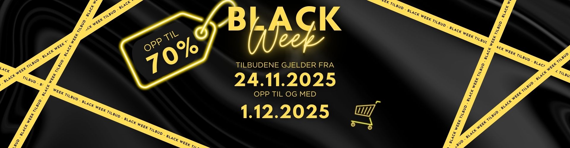 Her finner du våre gode tilbud i forbindelse med Black Week. Prisene på tilbudene vil ikke endre seg i løpet av uken, så du kan trygt handle hos oss akkurat når det passer deg i vår Black Week. Vi kan dog ikke garantere at produktene ikke blir utsolgt før du slår til på tilbudene - det er førstemann til mølla som gjelder.