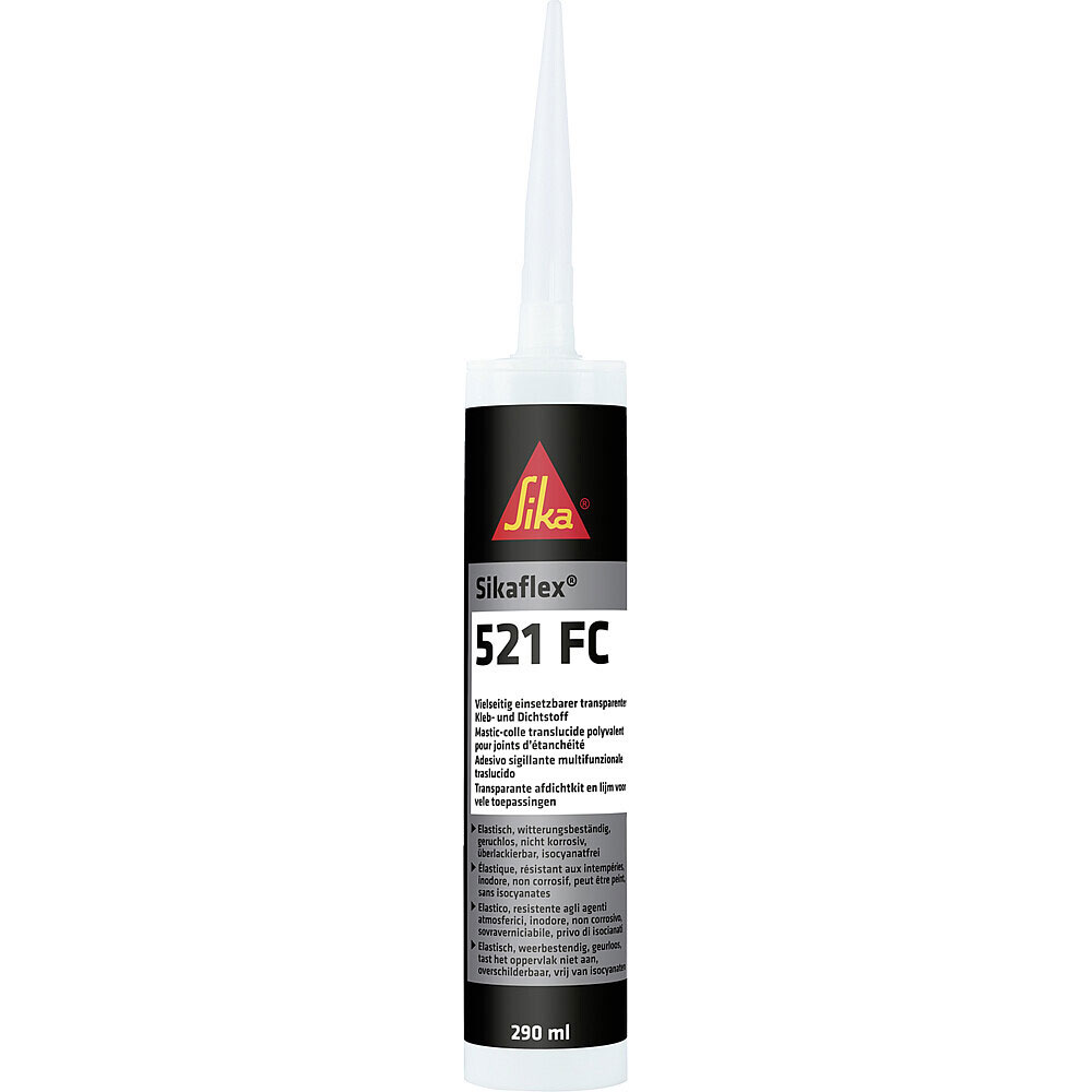 Sikaflex® 521 FC transparent er et allsidig 1-komponent lim og tetningsmiddel som herder ved hjelp av fuktighet i luften og danner en permanent elastisk fuge.
